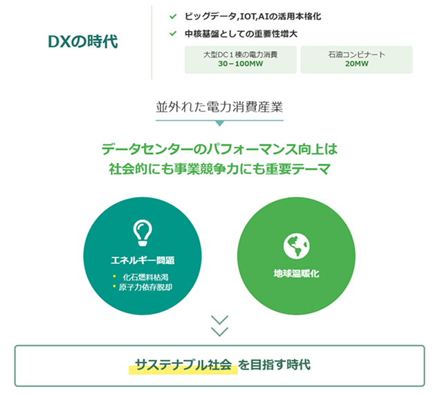 また、クラウド・生成AIの普及に伴う電力需要増に対応するため、今後はCN(カーボンニュートラル)・再エネ活用・データセンター分散化など、業界全体での持続可能な運用モデルの確立を目指しています